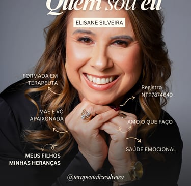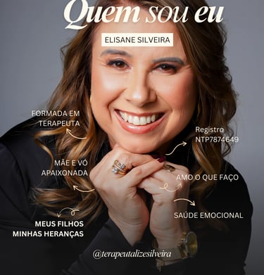 Terapeuta Lize traz um processo terapêutico profundo e acolhedor que ajuda pessoas presas em ciclos emocionais dolorosos — como ansiedade, luto, conflitos internos, inseguranças e dificuldades nos relacionamentos — a se libertarem das travas que as paralisam e a reconstruírem uma vida com paz, equilíbrio e vínculos saudáveis.